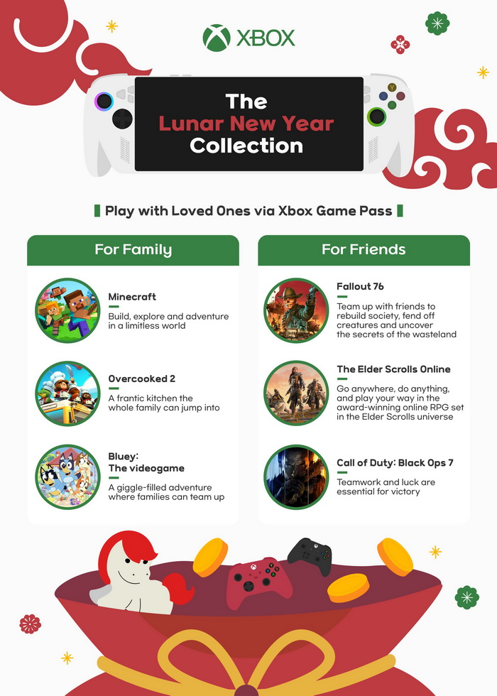 ตรุษจีนคือช่วงเวลาของการเฉลิมฉลองโชคลาภ เชื่อมสายสัมพันธ์ และร่วมสนุกสนานกับครอบครัวและเพื่อนฝูง และด้วย Xbox Game Pass การเล่นเกมสามารถนำพาคนที่คุณรักมารวมกันเพื่อสร้างช่วงเวลาที่น่าจดจำและมีความหมาย