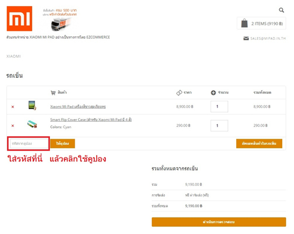 พิเศษสุดสำหรับชาว Techmoblog ที่ต้องการเป็นเจ้าของ Xiaomi Mi Pad ในราคาพิเศษ เครื่อง + เคส จากราคาเต็ม 9,190 เพียงนำรหัสคูปองส่วนลดที่ได้รับจากทางเว็บไซต์.... ไปใส่ในช่องรหัสคูปองในหน้าสั่งซื้อ คุณจะได้รับส่วนลดทันที 390 บาท เท่ากับว่าคุณจะได้เป็นเจ้าของ Xiaomi Mi Pad ในราคาเพียง 8,800 บาทเท่านั้น
