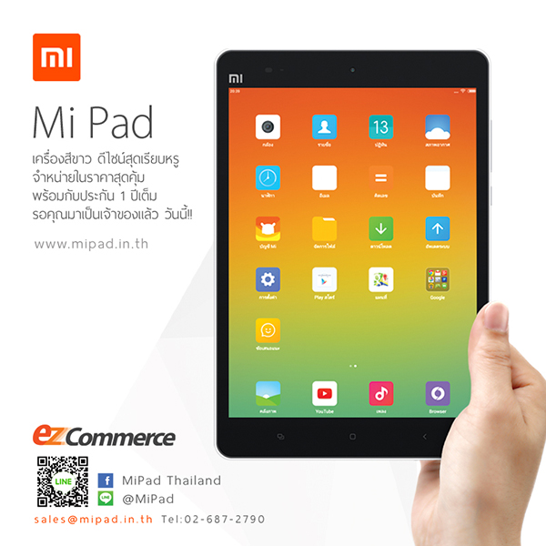 ที่ผ่านมาสำหรับผู้ที่สนใจอยากเป็นเจ้าของ ส่วนใหญ่ใช้บริการฝากหิ้ว การจะเคลมเครื่องหรือส่งซ่อมคงเป็นเรื่องที่ลำบากน่าดู แต่ปัญหานั้นจะหมดไป เพราะตอนนี้มีตัวแทนจำหน่ายผลิตภัณฑ์ Xiaomi ในไทยอย่างเป็นทางการ คือ บริษัท อีซี่ คอมเมิร์ช (ไทยแลนด์) (EZ Commerce (Thailand) Co.,Ltd.) เปิดตัวแรงด้วยการรับประกันเครื่อง Xiaomi Mi Pad ตลอด 1 ปีเต็ม พร้อม Shop สำหรับรับปรึกษาปัญหา ทดลองใช้งานและส่งซ่อมบนสถานีรถไฟฟ้ากลางเมืองที่จะทยอยเปิดขึ้นเรื่อยๆ หมดปัญหา ไร้กังวลเรื่องเครื่อง หิ้วไม่มีประกันไปได้เลย