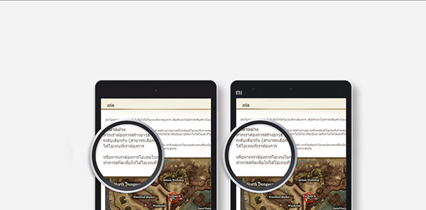 อันดับแรกที่ต้องพูดถึง คือเมื่อมีตัวแทนจำหน่ายในไทยอย่างเป็นทางการ แน่นอนว่าเราก็จะได้เห็น Xiaomi Mi Pad รองรับภาษาไทยอย่างเต็มรูปแบบนั่นเอง และแน่นอนผลิตภัณฑ์ในเครือ Xiaomi จะขึ้นชื่อเรื่องของความลื่นไหล ตอบสนองการใช้งานได้อย่างรวดเร็ว รวมไปถึง แรม ที่ใส่มาให้ถึง 2 GB เทียบเท่าสมาร์ทโฟนตัวท็อปๆ ได้เหมือนกัน ไม่ว่าจะเป็นการใช้งานทั่วไป อย่างเล่นเน็ต ทำงานเอกสาร เล่นเกมได้อย่างจุใจด้วยความเร็วและกราฟิกคุณภาพ หรือจะเป็นแอพลิเคชั่นที่เน้นการประมวลผลหรือการเรนเดอร์สูงๆ (ที่เรามักจะทำในเครื่อง PC) ด้วยสเปคของ Xiaomi Mi Pad ทำให้สามารถทำทุกอย่างได้ในแท็บเล็ตทั้งหมด